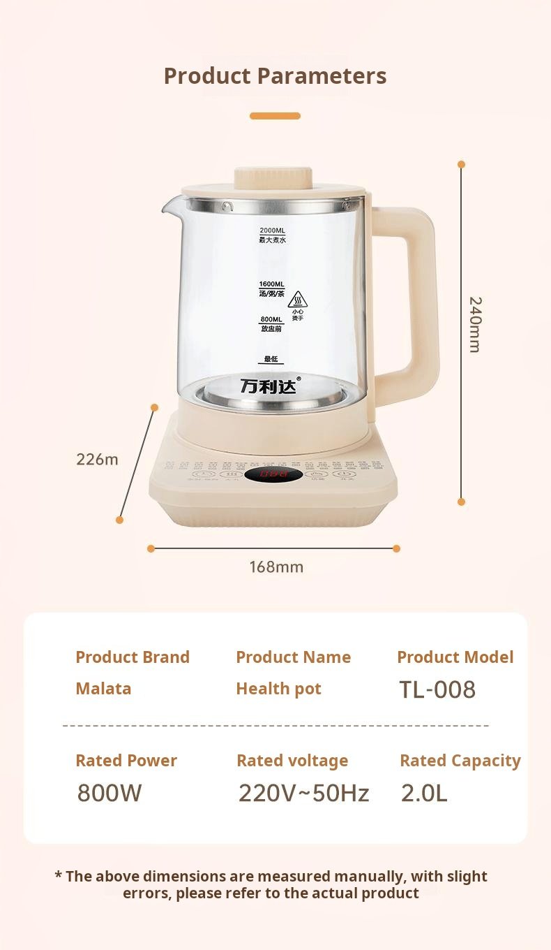 [6th Gen Upgrade] Malata Official 2L High Borosilicate Health Pot – Multi-Functional Electric Cooker for Home Use