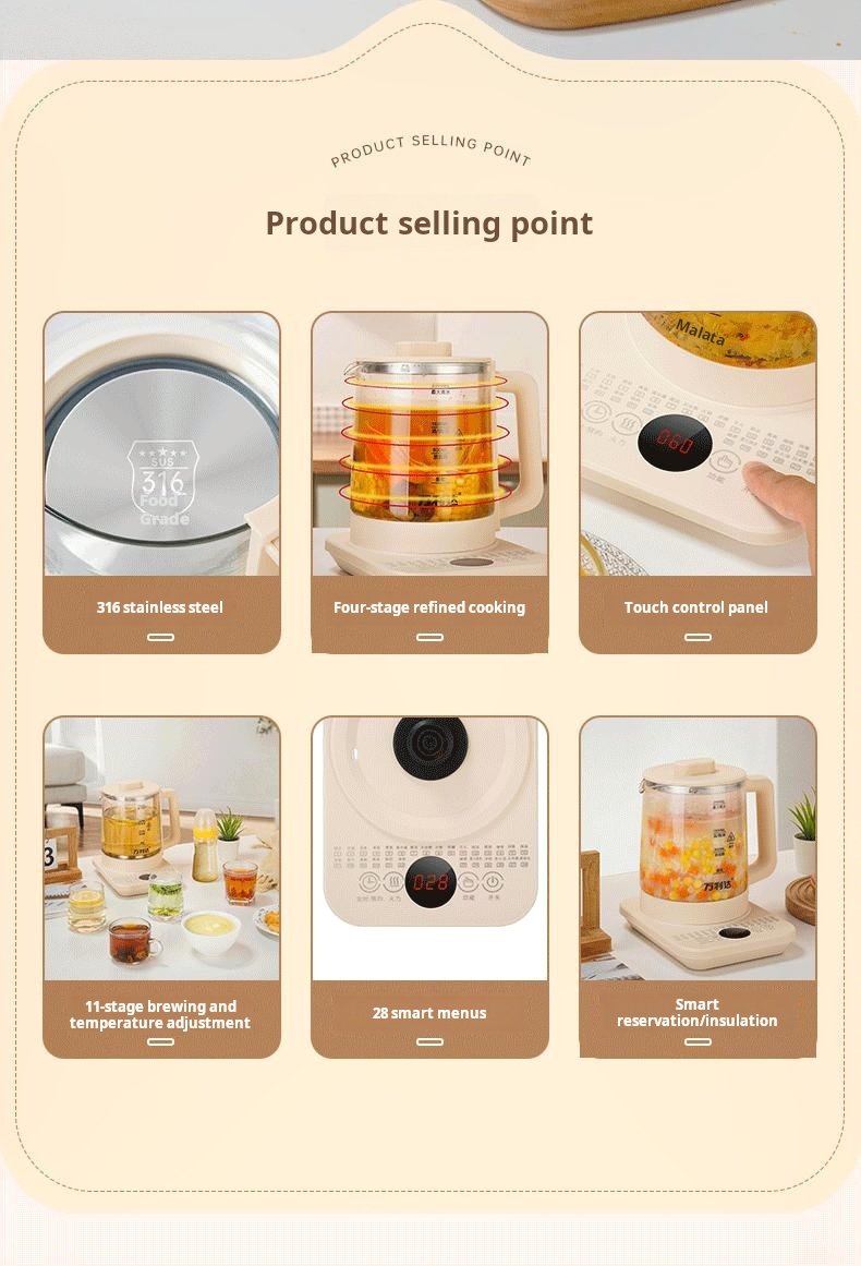 [6th Gen Upgrade] Malata Official 2L High Borosilicate Health Pot – Multi-Functional Electric Cooker for Home Use